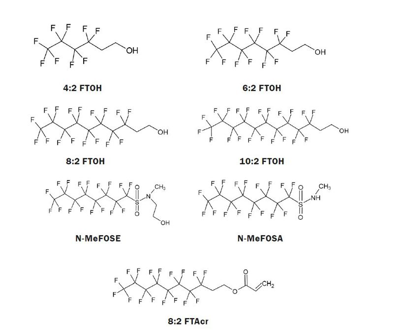 Further, sampling using sorbent tubes for analysis with TD–GC–MS enables the detection of both targeted compounds, such as fluorotelomer alcohols (i.e., 4:2, 6:2, 8:2 and 10:2 FTOH) and short-chain perfluorinated carboxylic acids (PFCAs), and non-targeted species of interest, such as fluorotelomer acrylates (FTAcrs), FOSE (perfluorooctanesulfonamidoethanol) and fluorotelomer sulfonamides (FOSAs).