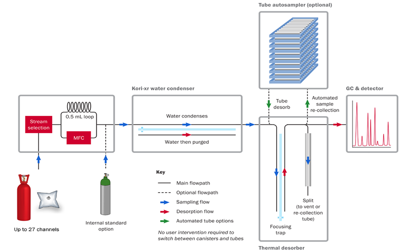 Sorbent tube-based thermal desorption units (e.g. UNITY-xr, UNITY–ULTRA-xr, TD100-xr) can also be used for off-line sampling. However, these tube-based approaches are not compatible with formaldehyde and hydrogen sulfide.